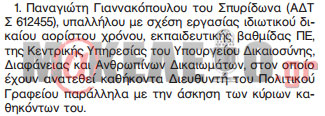 Όμως, η οικογένεια έχει ακόμα ένα μέλος της σε υπουργείο! Μιλαμε για τον σύζυγο της κ. Αναγνωστοπούλου, Παναγιώτη Γιαννακόπουλο, ο οποίος είναι διευθυντής του πολιτικού γραφείου του υπουργού Δικαιοσύνης, Νίκου Παρασκευόπουλου. Αυτή τη φορά δεν πρόκειται για διορισμό, αλλά για απόσπαση. Συγκεκριμένα, ο Παναγιώτης Γιαννακόπουλος στις 2 Μαρτίου του 2015 αποσπάσθηκε από την κεντρική υπηρεσία του υπουργείου Δικαιοσύνης και Ανθρωπίνων Δικαιωμάτων για να βρεθεί στη θέση του διευθυντή του πολιτικού γραφείου του υπουργού.