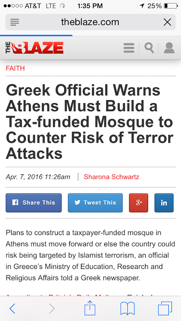 Να φτιαχτεί τζαμί για να μειωθούν τα ποσοστά ενός τέτοιου ενδεχόμενου , σημειώνει δημοσιογράφος η οποία σύμφωνα με όσα υποστηρίζει…. έχει επαφές με συναδέλφους της στην Ελλάδα και κάτι τέτοιο…. είναι στα άμεσα σχέδια των υπευθύνων στην Αθήνα!.